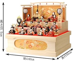 Hay variedades de tamaño. Los grandes son más grande que lavadoras. Así que si quieres comprar Hina-ningyo más lujoso de 7 escalas, planea bien en dónde vas a colocar. Se venden pequeños y bonitos adecuados para colocar en las ventanas salientes también.